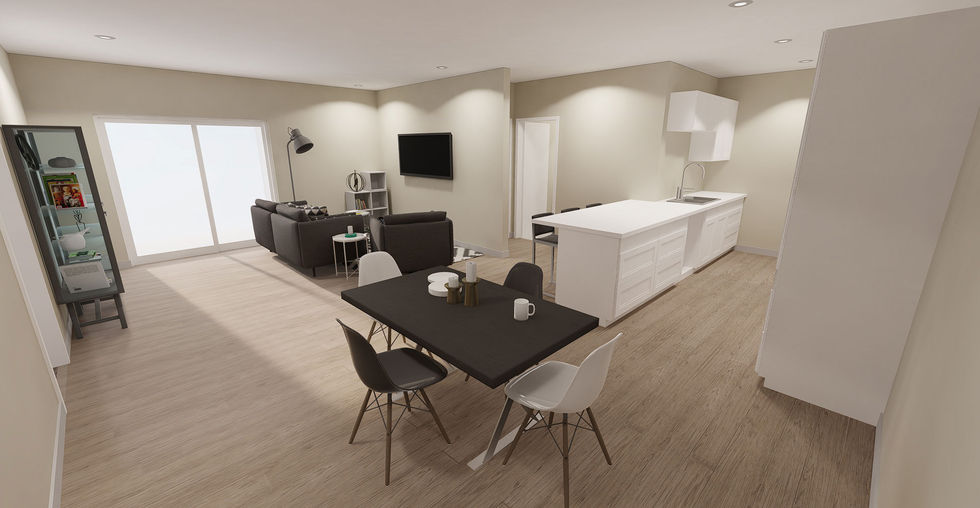 Pre-engineered hardwood flooring in the Living Room, Dining Area and Kitchen