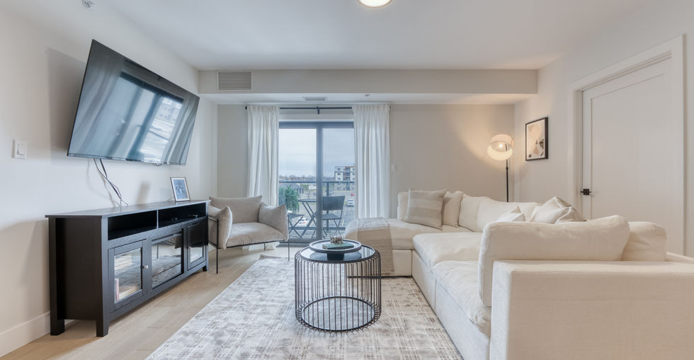 Professionally upgraded with high-end designer finishes, this stunning 2-bed, 2-bath condo offers luxury living at its finest. Features include premium engineered hardwood and smooth drywall ceilings throughout, sleek glass shower enclosures in both bathrooms, and a modern kitchen with stainless steel appliances, French door fridge, microwave range hood combo, and a timeless counter-to-ceiling tile accent wall with floating shelves. Bright, open layout with upscale touches that set this unit apart.